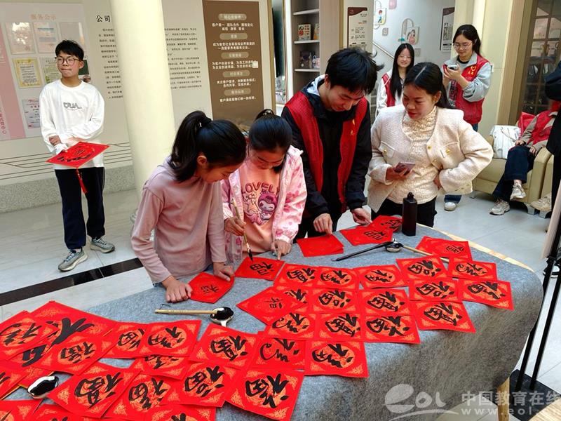 在书法志愿服务区的现场,浙江树人学院毫末书院书法社学子即席挥毫,以“福”等吉祥字为创作主题,来自杨汛桥中学团员和少先队员为前来参与活动的长者们送上诚挚祝福,还进行了书法指导,现场书写书法作品几十幅。