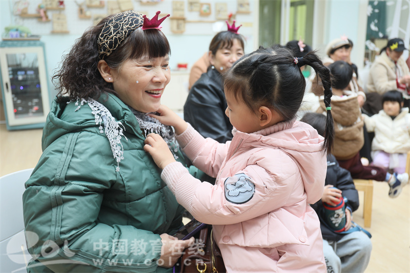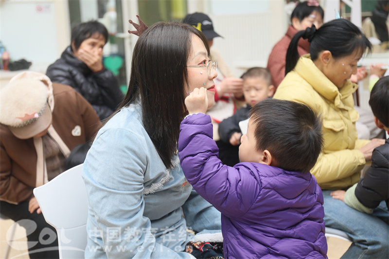 为了让女性家长们感受到节日的仪式感,孩子们还化身“小小造型师”,亲手为妈妈、外婆、奶奶戴上精美的皇冠,贴上闪闪发亮的面部亮片,围上漂亮的丝巾。经过孩子们的精心打扮,每一位女性家长都焕发出别样的光彩,脸上洋溢着幸福的笑容。