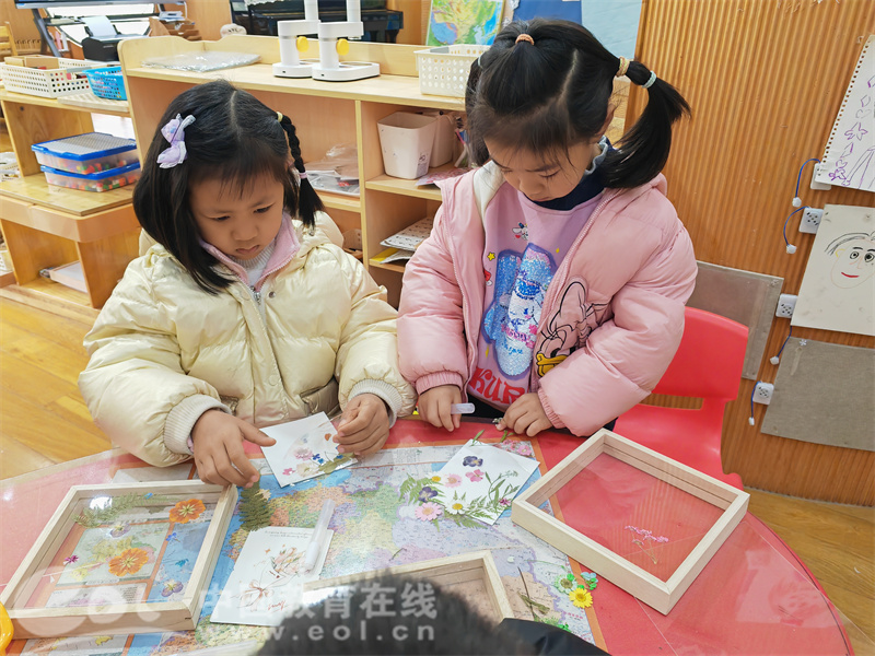 小朋友们专注地调整着花朵的位置,一边制作一边交流:“妈妈最喜欢粉色,我要多放一点粉色的花!”“我要做一个爱心形状的花朵图案,妈妈看到一定会很开心!”在孩子们的巧手创作下,一幅幅美丽的压花相框逐渐成型,仿佛春天的色彩被定格在了这一方小小的相框之中。