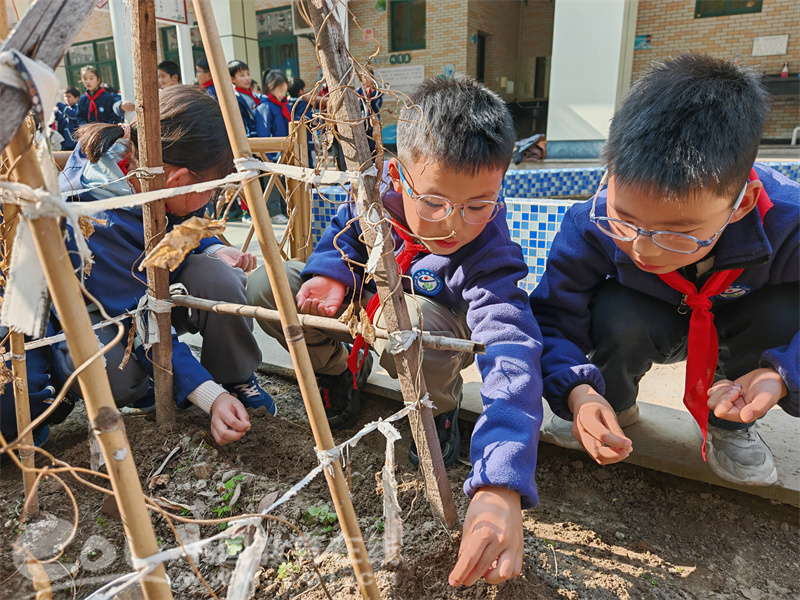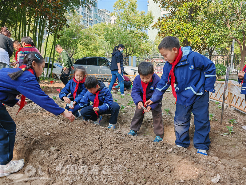 中国教育在线浙江站讯 (编辑 陈显婷 通讯员 朱清清)3月12日,杭州市闻涛小学的小农场里热闹非凡!“小浪花启新程”分地挂牌仪式正在这里举行。程老师一声令下,三年级的孩子们兴奋地领取了自己的“梦想之地”,将精心设计的标志牌挂了上去。