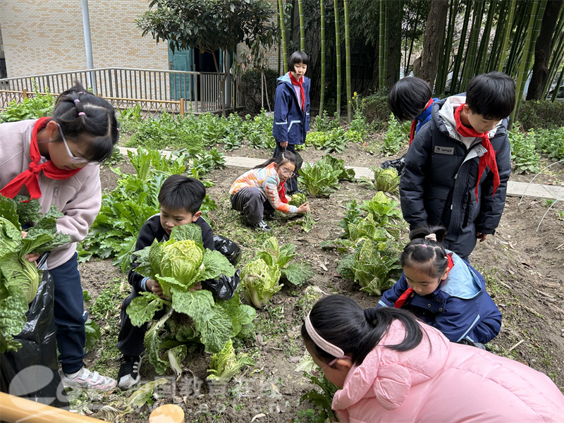 老师在一旁细心指导,确保每位“小农夫”都能安全完成任务。短短20分钟,农场里满是欢声笑语,孩子们不仅收获了蔬菜,更收获了劳动的快乐与成就感。