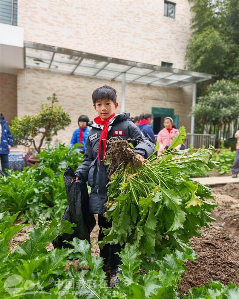 曾有那么一个中午,阳光洒满农场,三年级的小农夫们开启了“小浪花拾春日”的收割之旅。青菜、油麦菜、萝卜整齐地排列在田间,仿佛在向孩子们招手。孩子们小心翼翼地收割着,脸上洋溢着满足的笑容。