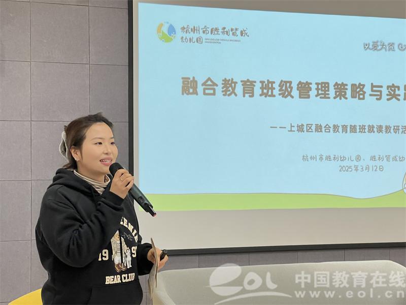 中国教育在线浙江站讯 (编辑 鲁少辛)为深入探讨融合教育班级管理的有效策略,提升教师对特需幼儿的支持能力,近日上城区融合教育随班就读教研活动“金点子——融合教育班级管理策略与实践”研讨活动在杭州市胜利笕成幼儿园源聚园区举办。本次活动汇聚了多位教育专家及一线教师,围绕融合教育的实践经验、班级管理策略和个案研究展开深入交流,共同推动融合教育的高质量发展。