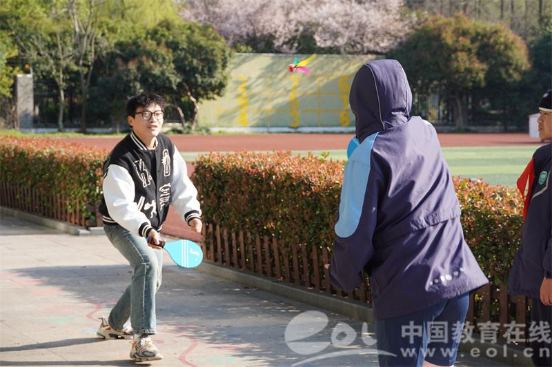 除此之外,学校还贴心地为每个班级送上“课间活动创意基金”,发光跳绳、感应式沙包、迷你篮球……学生自主投票选购心仪器械,让课间运动“我的地盘我做主”。也有老师号召同学们自己动手设计游戏道具,其中,由孩子们自己设计的“诗词飞行棋”最受欢迎。一位班主任展示着学生手绘的棋盘,骰子落定处对应的诗句背诵任务,让传统文化浸润在欢声笑语中。