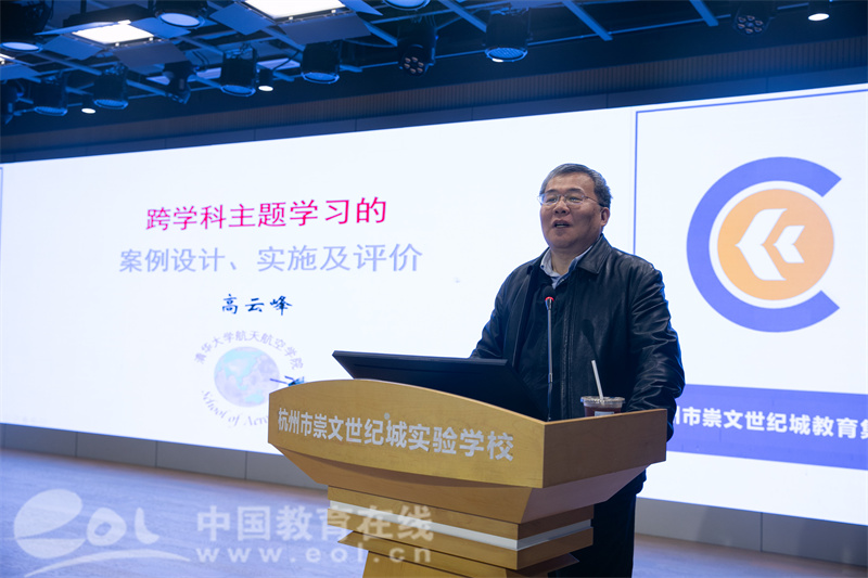 当天,高云峰教授还为萧山区的科学教师带来一场前沿的跨学科主题学习盛宴。这场以“跨学科探究实践”为核心的讲座,不仅为教师们打开了教学新视界,更引发了教育理念的深刻碰撞。
