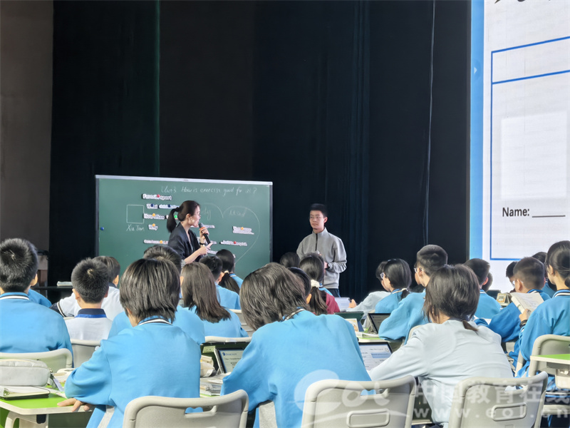 课堂开始,赵老师先带孩子们做了健身操,唤醒学生们的课堂活力并且引入单元主题。通过课文中三位同学运动方式的展示,赵老师从What, How often 和Why三个方面引发了学生的思考。最后,从课本走向真实生活,赵老师带领同学们记录了属于自己的健康生活方式。赵老师的课堂真正实现了从‘教教材’到‘用教材育人’的转变,以主题意义探究为主线,通过结构化活动设计促进学生核心素养的螺旋式提升。