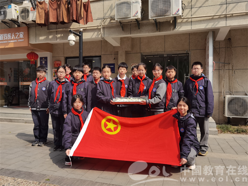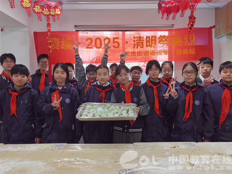 中国教育在线浙江站讯(通讯员 赖晓敏)“您尝尝‘校徽青团’!”杭州市大成岳家湾实验学校学生将刻有学校图案的清明果递给社区张叔叔。4月3日上午,学校联合新华坊社区打造的“流动节气课堂”火热开讲,15名学生代表在青团制作中架起校社联动的文化桥梁,让清明民俗在代际对话中焕发新味。