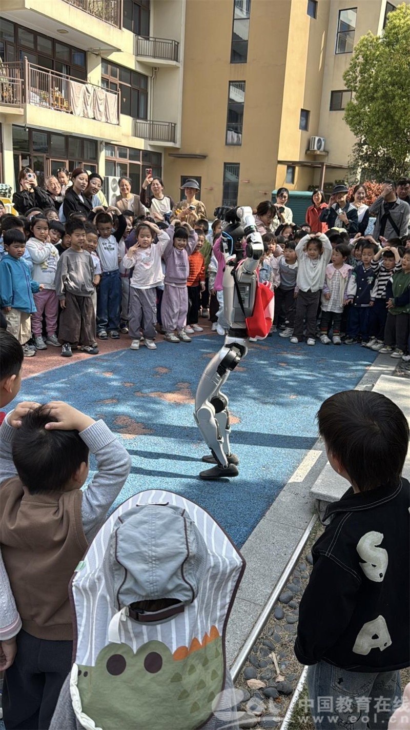 中国教育在线浙江站讯 (编辑 鲁少辛)4月7日,杭州市胜利笕成幼儿园迎来了一个特别的“小伙伴”——来自宇树科技的智能机器人。在这个充满希望的日子里,孩子们不仅体验到了升旗仪式的庄重,还在机器人的陪伴下跳起了欢快的舞蹈,共同度过了一个难忘的上午。