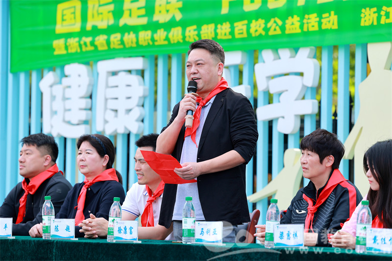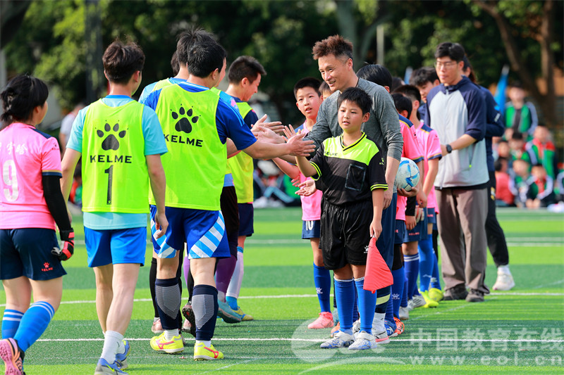 西湖区体育局体育管理科徐康富老师在致辞中高度肯定了星洲小学的体育教育成果。他指出,作为全国青少年校园足球特色学校,肯定星洲小学积极开展校园足球各项活动,呼吁学子以足球强体魄、炼品格、育情怀,传承蹴鞠文化,并且预祝赛事圆满成功。