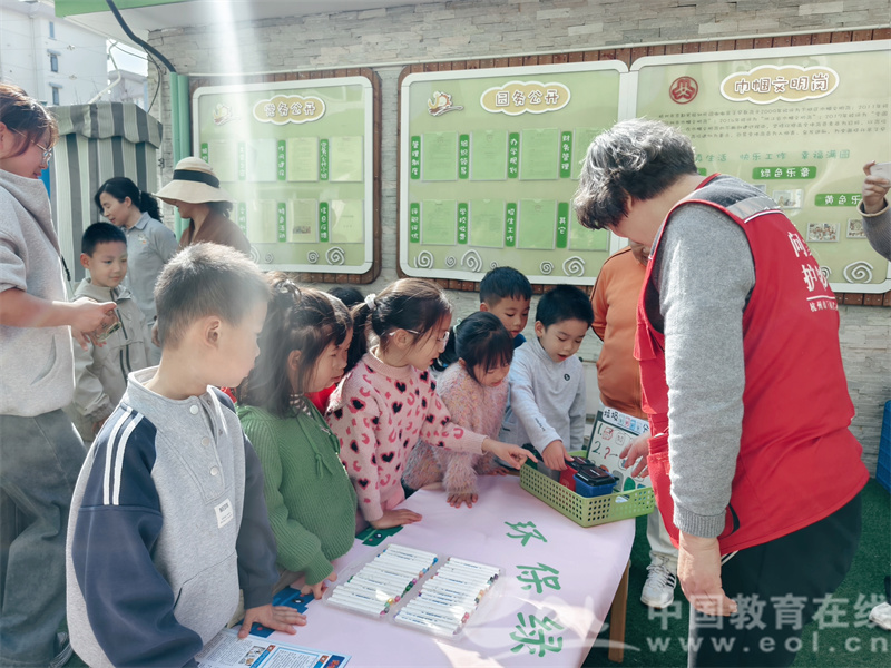 活动尾声,社区老党员李奶奶和“武林大妈志愿服务队”将亲手制作的环保笔筒赠送给孩子们。这些笔筒用废旧纸盒和彩纸改造而成,既传递了绿色生活理念,也寄托了长辈对下一代的关爱。志愿者们还通过卡通动画演示垃圾分类,孩子们争相将道具卡片投入对应垃圾桶,现场气氛热烈。