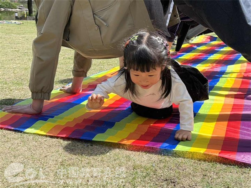 在爸爸妈妈的陪伴下,孩子们的小脚丫勇敢地踏上了探索春天的快乐之旅。宝贝们的小脚踩在爸爸妈妈的大脚上,一步一步感受春天的温暖。快看,爸爸妈妈给孩子们搭起来的春日彩虹桥,钻过彩虹桥我们就可以抓住多彩的春天啦。