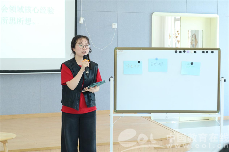 随后学员们围绕社会领域学习与发展核心经验,对活动目标、活动内容、环节设计、教学策略等进行了思考与交流,在观点碰撞中梳理、归纳了活动的亮点与提升空间。对话让学员们对“自我意识”“人际交往”“亲社会行为”“社会认知”“归属感”等社会领域核心经验有了更加深入的解读。