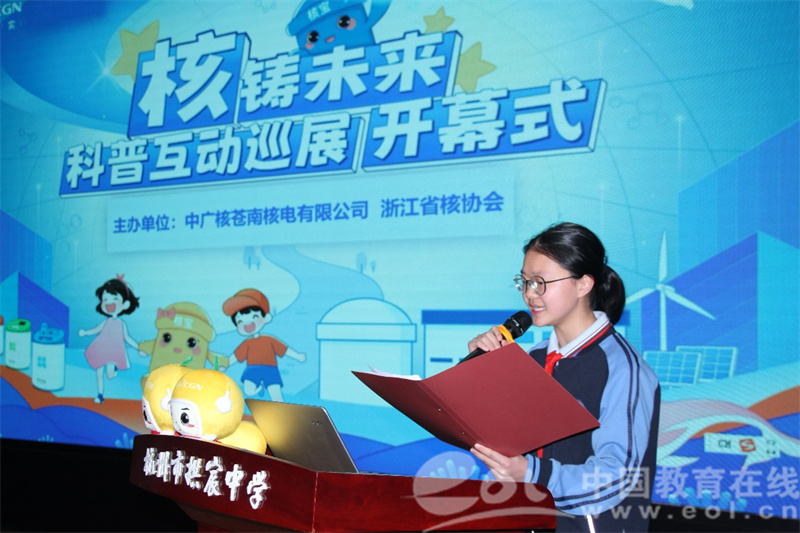 中国教育在线浙江站讯(编辑 邱彬鑫)为深入贯彻教育部《中小学科学教育工作指南》要求,落实“全员科学素养提升”与“创新人才发现培育”行动,4月15日,杭州市拱宸中学联合中广核苍南核电有限公司,以“核电科普进校园”为载体,开展了一场融合能源战略、科技创新与生态文明教育的特色科学实践活动。本次活动不仅是落实“双减”政策下科学教育提质增效的生动实践,更是推动“大中小贯通培养”与“家校社协同育人”机制的创新探索。
