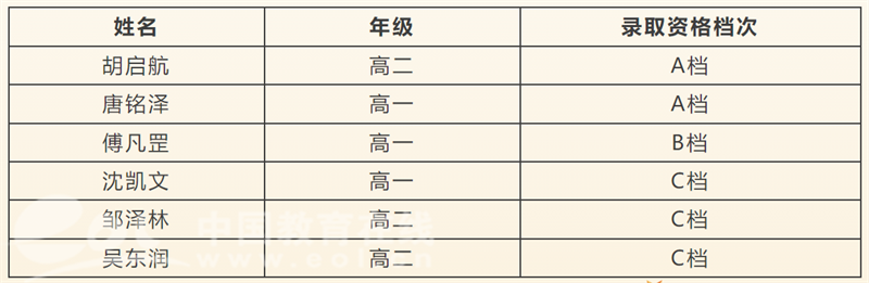 今年,天元公学高中部六名同学以优异的成绩成功入围,其中2名同学获评A档,1名同学获评B档,3名同学获评C档,成为浙江省乃至全国同龄人中的佼佼者。这不仅是对学生个人能力的肯定,更是天元公学拔尖创新人才培养模式的又一成果体现。