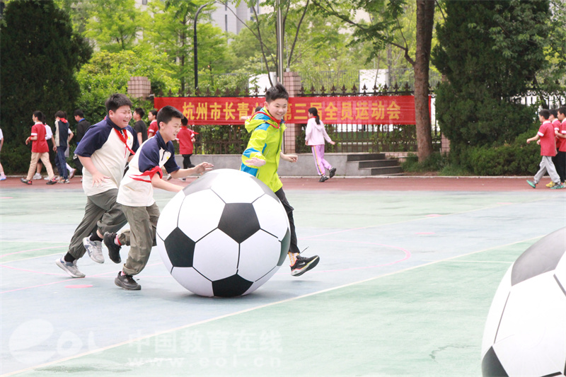 中国教育在线浙江站讯 (编辑 陈显婷 通讯员 俞玲娜 李秀群)“今天玩得太开心啦!真盼着下次还有这样的活动!”4月 26日,杭州市长青小学第三届“全悦动,齐闪耀”主题全员运动会暨足球嘉年华活动结束后,孩子们兴奋地讨论着。两个校区的操场上,春日暖阳下,孩子们红扑扑的脸蛋洋溢着喜悦,加油声、欢笑声此起彼伏。