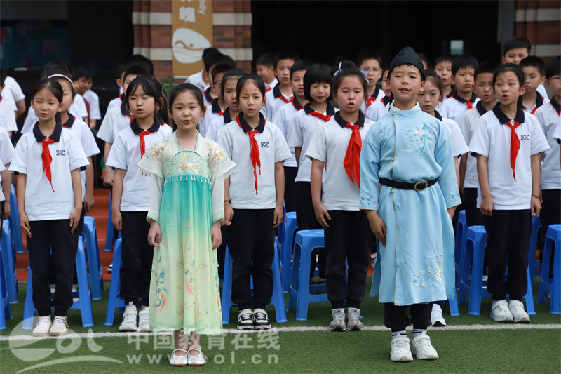 开幕式上,各年级学生通过精心编排的经典诵读节目,展现了不同年龄段的阅读风采。一年级学生以童真童趣演绎古典诗词的韵律之美;二年级学生通过四季主题的诗文联诵,呈现自然与人文的和谐共生;三至六年级学生则分别以边塞诗、励志诗等题材,彰显了中华诗词文化的深厚底蕴。