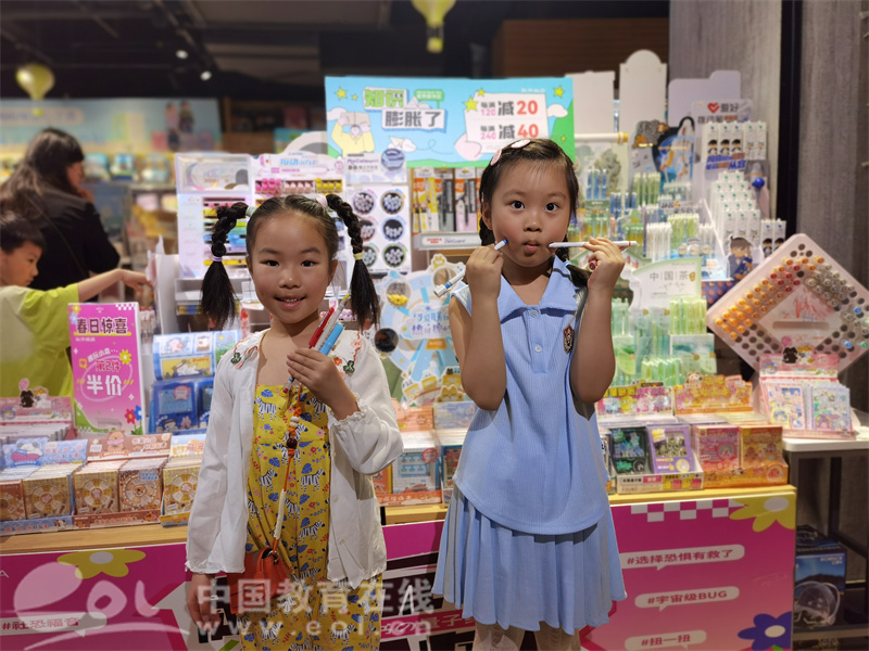 完成打卡活动后,小朋友们在爸爸妈妈的帮助下自主选购文具,他们将铅笔比作“金箍棒”、橡皮视作“乾坤袋”,将自己的天马行空装进这个神奇铅笔盒中。
