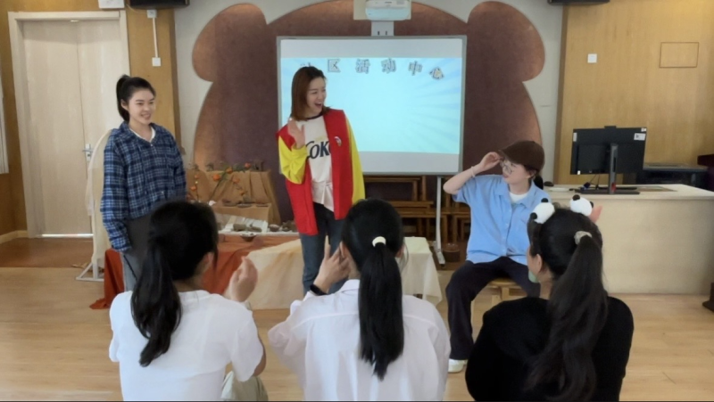 理论学习过后,精彩的“教育微剧场”展演将活动推向高潮。青年教师们根据日常教学场景和教育热点,精心筹备了剧目《小小五四传承者》。剧中,林老师、小宇、糖糖等角色鲜活生动。课堂上,林老师引导孩子们思考五四青年节的意义;社区里,陈爷爷讲述过去的奋斗故事,志愿者姐姐展示青春担当;家园互动环节,家长和孩子们一起制作五四主题小勋章。最后,孩子们将勋章送给心中的青年榜样,传递着五四精神。剧目虽小,但从确定主题到实际拍摄,每一个环节都凝聚着老师们的心血。