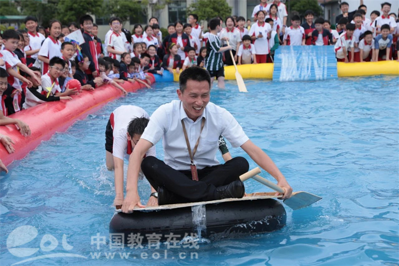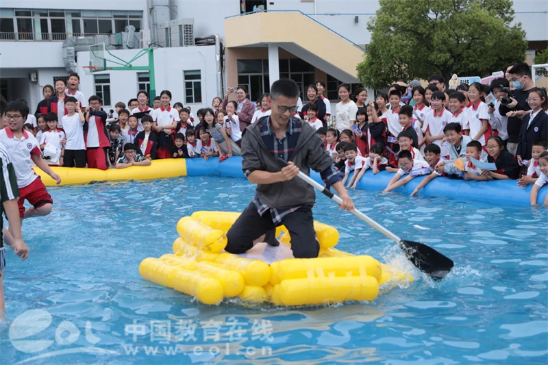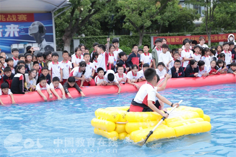 中国教育在线浙江站讯 (记者 陈显婷 通讯员 张若诗 孔诗琪)废弃可乐瓶变身竞速战舰,彩虹池上演划船巅峰对决。近日,杭州市实验外国语学校小学部第六届科创嘉年华以一场别开生面的“水上争霸赛”压轴收官,五年级学生自制的13艘环保船同场竞技,将为期一个月的科创节推向高潮。