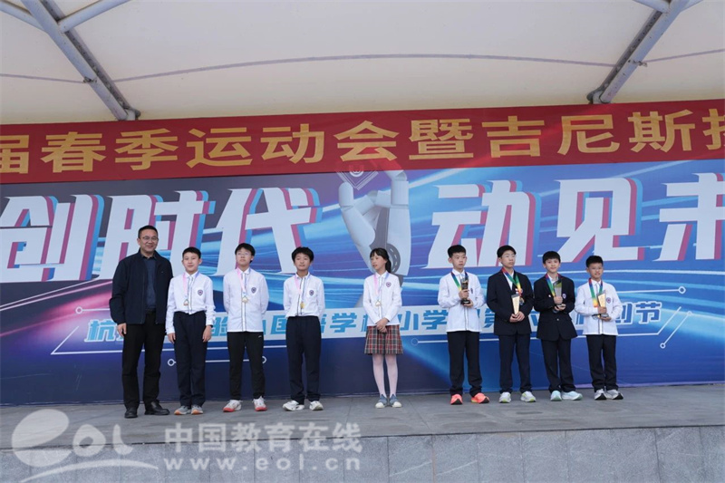 颁奖典礼上,学校领导为在思维挑战赛、AIMV数字创作、“英与科学”等跨学科项目中获奖的学子颁奖。特别引人注目的是由601班陈沐天、俞政宇、张鑫榆、吴东泽四人组成的挑战队,他们以2.01米的成绩刷新了校“牙签高塔”吉尼斯纪录。孩子们激动地表示:“圆梦了!”