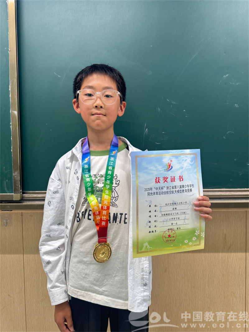 值得一提的是,这次比赛在浙江省范围内展开,全省众多优秀选手齐聚一堂,竞争异常激烈。崔璨能在高手如云的赛场上脱颖而出,勇夺第一名,实属不易。这份荣誉不仅是对他个人努力的肯定,更是云帆小学的骄傲。