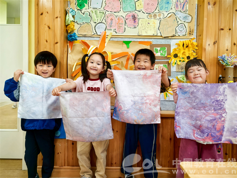 一场梦幻的漂漆丝巾制作活动也在如火如荼地进行。在爸爸们的鼓励下,孩子们小心翼翼地拿起丝巾,轻轻放入漂满颜料的水中,再慢慢提起,一幅幅独一无二的梦幻图案便出现在丝巾上,有的似浩瀚星空,有的如绚丽霞光。孩子们的脸上洋溢着自豪与喜悦,他们知道每一条丝巾都蕴含着自己对妈妈的爱与感恩。