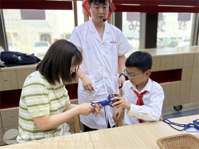 最受欢迎的当数“亲子制作养生锤”环节:活动现场,孩子们认真地将中药粉和各类中药材混合在一起,小心翼翼地插入棍子,接着用布将中药粉捏成球状,再和爸爸妈妈一起用绳子将球和棍子缠绕固定。制作完成后,孩子们拿着亲手制作的养生锤,为妈妈捶背、捶肩,表达对妈妈的爱。这一活动不仅让孩子们体验了传统中医药文化的魅力,更增进了亲子之间的感情,让感恩与爱在传统节日中得以传承。