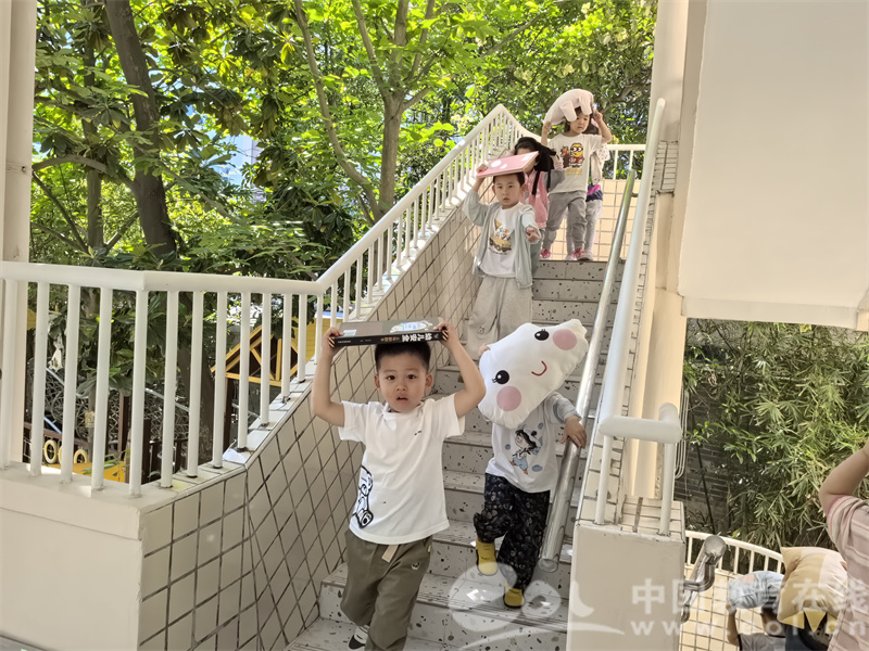 待“地震晃动”减弱后,各班教师立即组织幼儿用物品护住自己的头,弯腰低身,按照预定疏散路线,有序撤离教学楼。过程中,老师们一边引导幼儿快速疏散,一边提醒幼儿注意安全,避免拥挤踩踏。到达安全区域后,各班教师快速清点人数并上报。整个疏散过程紧张有序,全体师幼顺利完成撤离。