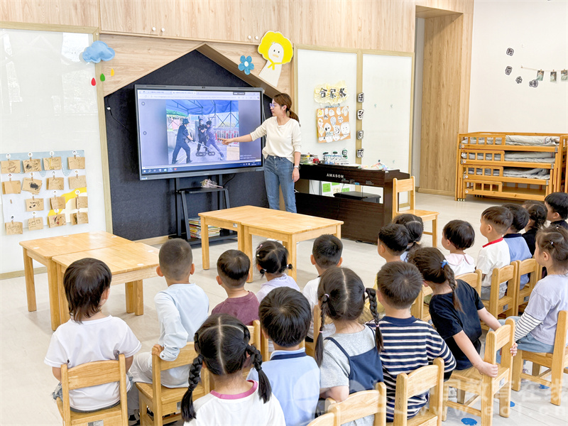 与此同时,应急小组人员携带防暴器材迅速赶到现场,与保安人员协同作战,合力制服“坏人”。整个演练过程紧张有序,各环节配合默契,全体师幼反应迅速,有效展示了幼儿园应对恐怖事件的应急能力。之后,老师们通过生动有趣的讲解和互动游戏,向小朋友们传授防暴知识。孩子们认真倾听,积极回答问题,深入学习如何在危险面前保护自己。