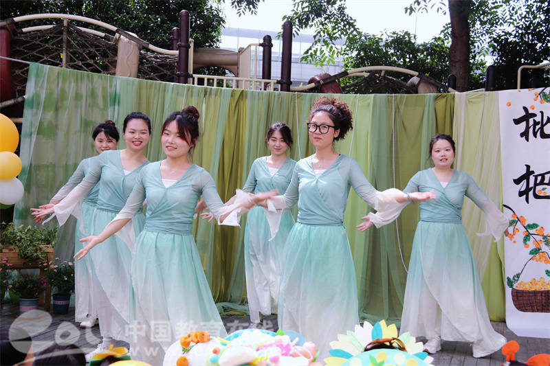 老师们身着汉元素舞蹈服带来的《上春山》,以轻盈舞姿拉开了精彩表演帷幕。孩子们化身枇杷精灵,用歌声、舞蹈、诗歌等形式,演绎了一场丰富多彩的 “枇杷秀”。《山枇杷》唱出枇杷的香甜,手指谣展现枇杷成长过程,枇杷服装秀更是创意十足,孩子们的精彩表现赢得了阵阵掌声。