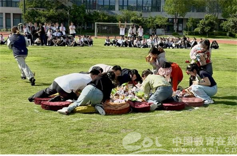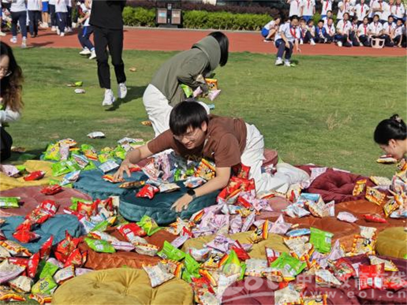 中国教育在线浙江站讯(通讯员 王惠)“加油!老师快冲!”“小心!薯片要掉了!”——阵阵欢呼与笑声从操场传来,杭州市丁蕙实验中学举办的“零食大作战”活动正火热进行中!5月19日,这场别开生面的趣味挑战赛在校园里掀起一阵欢乐风暴,各班师生齐上阵,上演了一场速度与激情的零食争夺战!
