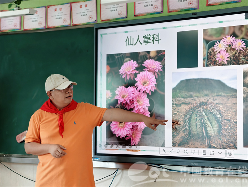 课堂上,罗爸爸化身“多肉导师”,通过展示自己拍摄的精美照片,详细介绍了多肉植物的丰富种类与多样产地。从热带沙漠到高山地区,不同地域孕育出形态各异的多肉,瞬间吸引了孩子们好奇的目光。随后,他不仅深入浅出地阐述了养多肉的美学与精神价值——色彩斑斓的多肉极具观赏性,其顽强的生命力更能传递积极向上的精神,还特别强调:“和孩子一起种植多肉,是拉近亲子关系的绝佳方式。在共同养护的过程中,家长与孩子相互协作、交流心得,能让情感在泥土与绿意间悄然升温。”