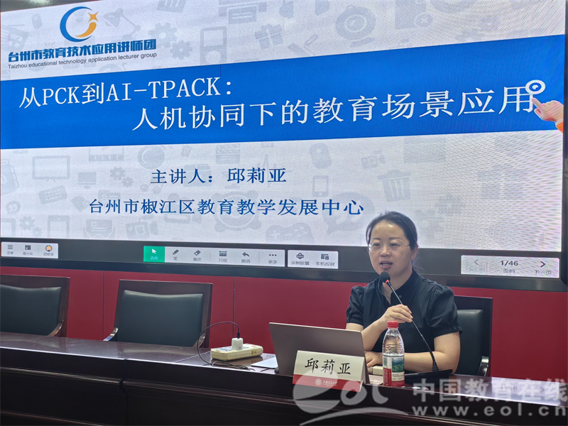 在技术赋能模块,浙江省特级教师、正高级教师、杭州市基础教育研究室中小学信息科技教研员李伟围绕生成式AI概述、生成式AI教学应用、智能体应用等三个层面谈生成式人工智能在教研中的实践应用。杭州市文海第二实验学校信息中心主任、省特级教师彭介军在《人机交互时代:AI大模型赋能创意内容开发探索》报告中,详细讲解了如何进行提示语设计、数字人制作和微视频动画等技术实操。杭州市钱塘区教师教育学院教研员、《钱塘教育》执行主编孙琍博士聚焦GAI赋能学科知识点的突破,分享了运用AI工具的研究成果,以及如何将通过教学研究赋能教师专业发展。台州市椒江区教育教学发展中心副主任邱莉亚现场演示了多款AI教育工具的创新应用,重点解析了希沃白板的智能反馈系统可实时捕捉学生课堂表现,为动态调整教学策略提供数据支撑。