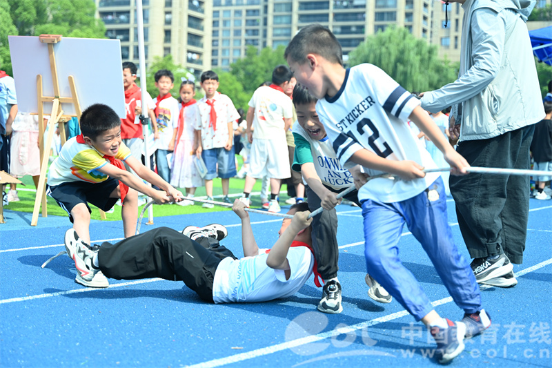 非遗体验区则流淌着传统技艺的脉脉温情。竹编展台前,孩子们制作龙舟,体悟“心手合一”的匠人精神;剪纸区里,红纸翻飞间,吉祥纹样跃然眼前,学生们在一剪一刀中培育专注力与审美力;滚铁环、抽陀螺等民俗游戏区欢声笑语此起彼伏,让老游戏焕发新活力。