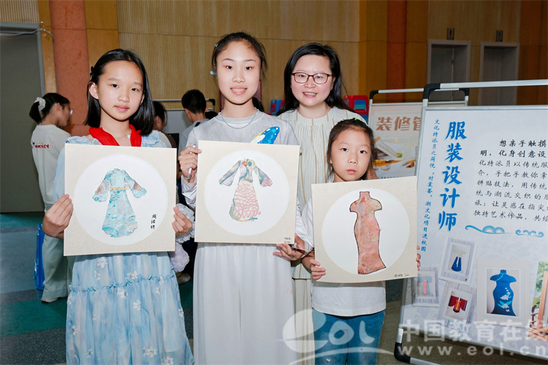 在“丝绸服装设计师”摊位,上城区文化特派员张西琴老师带领学生运用宋锦/杭罗丝绸边角料,依据传统图样设计并装裱服饰,感受千年丝绸文化的精妙。 陈红娟老师的“艾灸师”体验则让学生亲手制作“笕18中药艾草礼包”,了解非遗艾灸的养生智慧。