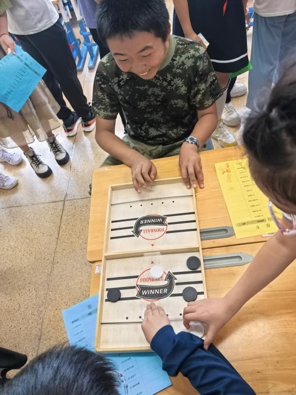 校园吉尼斯活动后,同学们仍意犹未尽,各班教室摇身变为趣味游戏的乐园。 同学们手持“集章卡”,穿梭于各个班级,挑战不同的班级游戏项目。传统游戏、益智挑战、体育运动……多样的游戏满足了每个孩子的爱好。 每成功挑战一个游戏,就能获得一枚印章。当同学们集齐印章,兴奋地奔向报告厅门口兑换奖品时,脸上满是收获的喜悦。大队委员们忙着为大家兑换奖品,现场一片欢声笑语。