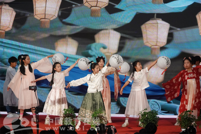 体育馆内,一场穿越时空的视听盛宴拉开帷幕。上城区关工委主任刘兴仙给孩子们送上了“六一”最真挚的祝福,随后,六个年级围绕宋韵美学的多个维度进行动态演绎。二年级的“宋韵音乐美学”率先登场,《永遇乐·宋韵踏歌》《童声雅韵声声慢》等歌舞,让丝竹管弦与童声雅韵交织;四年级的“宋韵文学美学”通过《藕花深处》《苏轼的诗意》等情景剧,将诗词意境搬上舞台;五年级的《风雅宋韵·筑梦千年》以情景舞蹈与朗诵,解码建筑智慧。