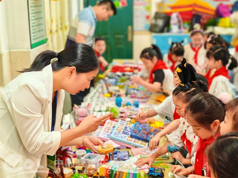 上午九点,随着广播声响起,各班教室瞬间沸腾。孩子们摇身一变成为精明的小摊主和精打细算的小顾客。四年级的陆同学兴奋地向记者展示他的“战利品”——一本故事书和一个手工香囊:“我用自己带的零花钱买的,一共才花了8块钱!我还卖掉了两个旧玩具,赚了6块呢,感觉特别有成就感,跟同学讨价还价可好玩了!”
