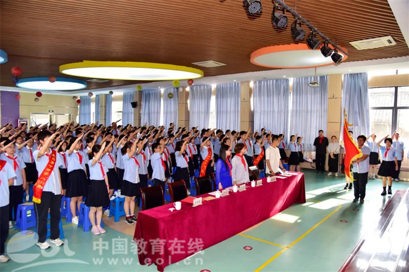 随后,全体新团员在杭州市优秀团员、中队辅导员龚菲老师的带领下,面向鲜艳的团旗,紧握右拳,庄严宣誓:“我志愿加入中国共产主义青年团……”掷地有声的誓言,是青春向党的坚定承诺,是为理想而奋斗的郑重宣言。