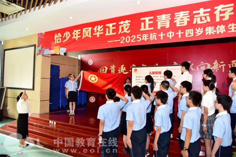 中国教育在线浙江站讯 (编辑 鲁少辛 通讯员 彭琼霞)十四岁,是人生开启新征程的重要起点,意味着正式迈入一个崭新的成长阶段。值此“六一”国际儿童节即将来临之际,5月30日下午,杭州第十中学八年级全体少先队员齐聚一堂,隆重举行“恰少年风华正茂 正青春志存高远”庆六一暨十四岁集体生日主题活动。