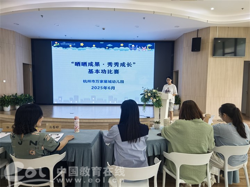 中国教育在线浙江站讯 (编辑 鲁少辛 通讯员 陈东东)为深入贯彻《3-6岁儿童学习与发展指南》和《幼儿园保育教育质量评估指南》精神,聚焦教师语言区环境创设以及区域游戏后谈话分享反思能力。近日,杭州市万家星城幼儿园开展“晒晒成果 秀秀成长”的教师基本功比赛活动。