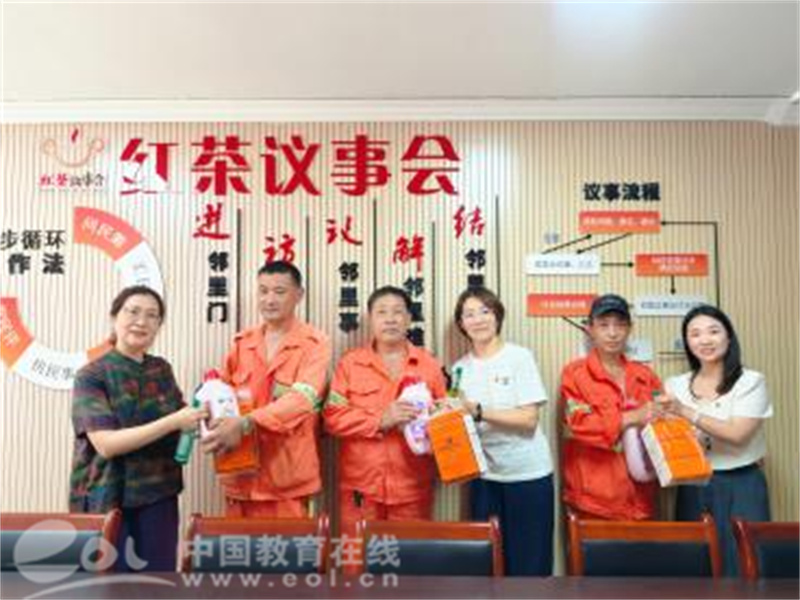 中国教育在线浙江站讯 (编辑 陈显婷)为弘扬尊老敬老、关爱劳动者的传统美德,践行服务社会的责任担当,朝晖幼儿园党支部于近日组织党员代表走进结对共建社区,开展“心系社区送温暖 真情关爱暖人心”为主题的慰问活动,亲切慰问辛勤工作的社区保洁工作者,为他们送去一份夏日的清凉与暖心的问候。