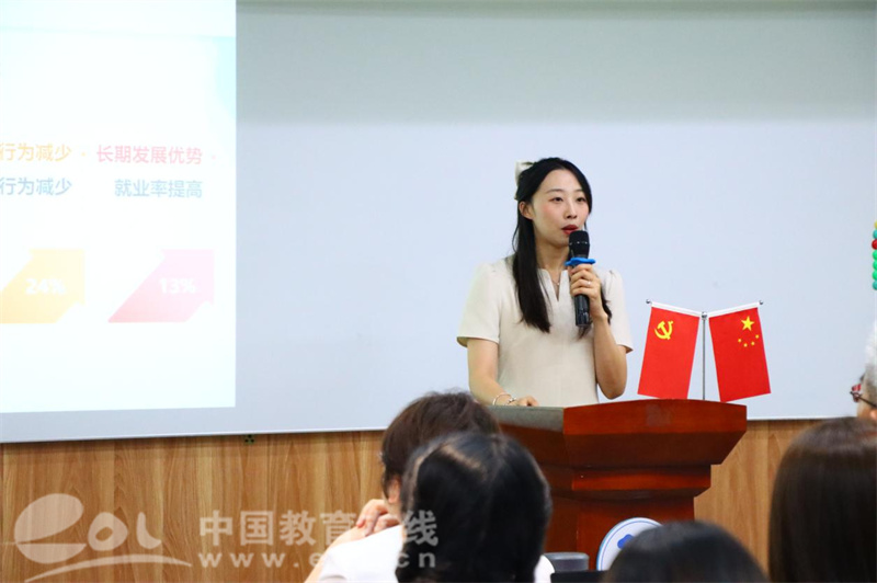金晓华详细介绍了学校独具特色的“两会三学四礼五节”生长活动体系,以“柚子节”PBL项目为例,生动展现了学生们在实践中学会合作与坚韧,将情绪转化为行动能力的全过程。