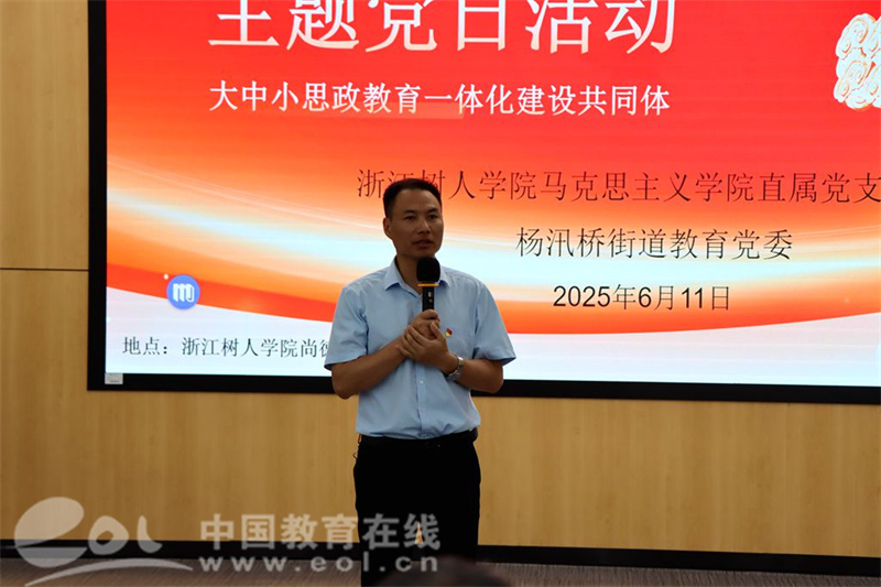 中国教育在线浙江站讯 (编辑 鲁少辛 通讯员 鲍文贤)在中国共产党成立104周年前夕,浙江省绍兴市柯桥区杨汛桥中学全体党员教师走进浙江树人学院(杨汛桥校区)校史馆,开展了一场别开生面的主题党日活动。通过“沉浸式校史学习+互动式思政研讨”的创新形式,实现了红色基因传承与育人使命强化的深度融合。