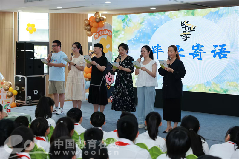 当学生们向辛勤付出的老师和后勤人员献上鲜花时,现场洋溢着温馨感人的氛围。家长代表的殷切寄语与教师们饱含深情的毕业赠言,更让这场告别仪式充满了成长的力量与希望的光芒。整场活动既是对美好童年的深情告别,更是向着崭新未来的温暖启航。