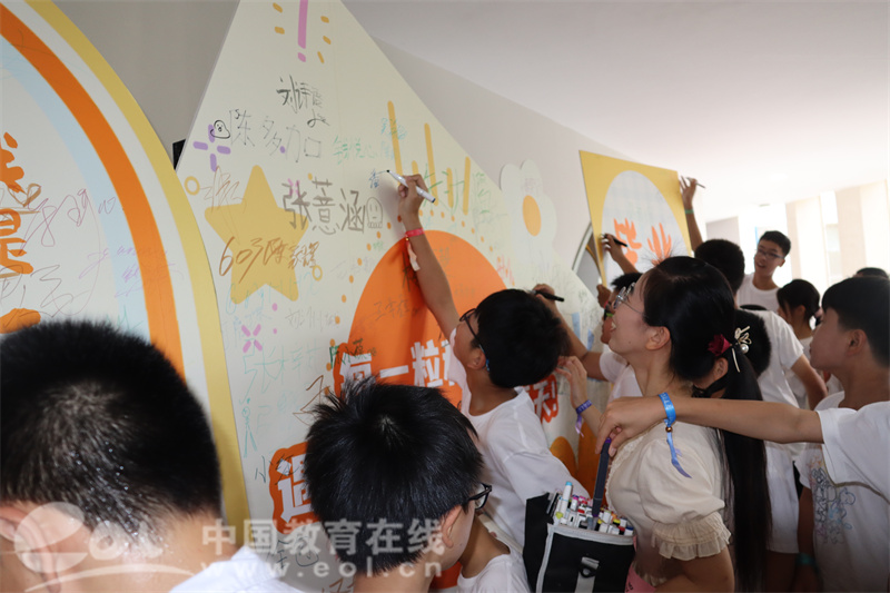 “种子少年们”在签名墙上郑重写下自己的名字,将承载母校印记的种子徽章佩戴在胸前,这份身份认同贯穿典礼始终。夏小的学生和夏二的学生们互送毕业祝福,在这份校际传承中,展现虽分设却体现了一脉相承的情谊。不少毕业班学生的弟弟妹妹身着校服为自己的哥哥姐姐们送去祝福,一声声稚嫩的话语,让家庭的温暖传承为毕业增添深厚情感底色。