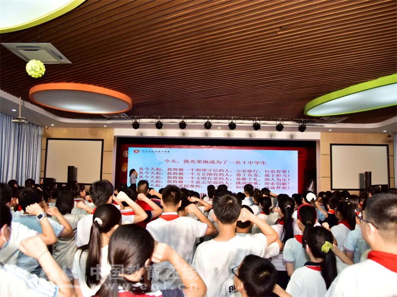在庄重的宣誓环节,全体新生在校学生会主席昝静书的带领下郑重承诺:做明理守信、方正刚直、文明有爱、意志坚强的十中人。最后,新生们将写满梦想的明信片投入邮筒,在家长见证下正式开启初中生活新征程。
