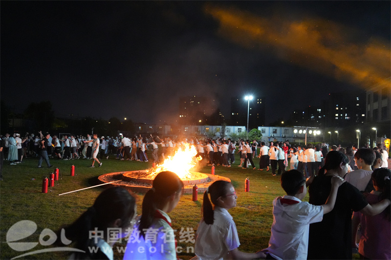夜幕降临,书记、校长陈群云与教师代表共同点燃主篝火,跃动的火光照亮了每一张笑脸。师生家长们手拉手围成同心圆,随着音乐轻轻摇摆。火光映照下,每个人的脸上都写满了感动与期待。