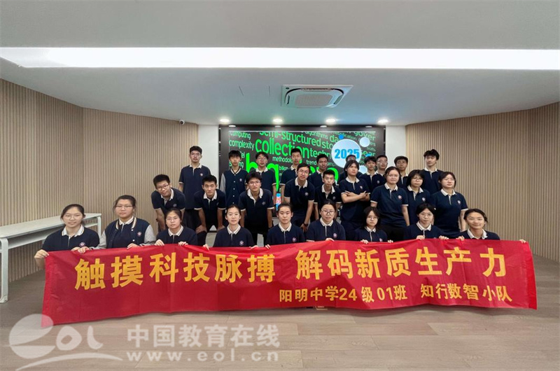 中国教育在线浙江站讯 (编辑 陈显婷 通讯员 陈屠璟韬)7月7日,绍兴市阳明中学高一(1)班30名同学,赴浙江工业职业技术学院信息与设计学院,参加主题为“数字科技赋能”的研学活动。此次活动是学校2025年暑期社会实践活动的重要组成部分,紧扣“青春为中国式现代化挺膺担当”的主旨,旨在通过实地学习,引导青年学生深入理解数字技术在国家发展中的核心作用。