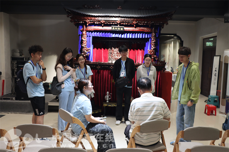 交谈中,两位老师表示非遗传承面临“人才匮乏”挑战,呼吁通过提供更多政策支持来吸纳更多青年人才。同时,也嘱托实践队员们可以以文旅宣传为传播火种,让更多游客走进剧场,让常态化演出的掌声成为滋养木偶戏在新时代绽放的春雨。
